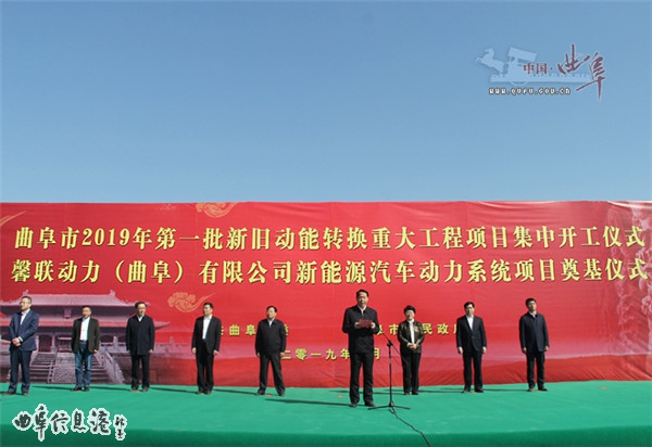 3月15日,全市2019年第一批新舊動能轉(zhuǎn)換重大工程項目集中開工儀式暨馨聯(lián)動力(曲阜)有限公司新能源汽車動力系統(tǒng)項目奠基儀式舉行。劉東波、彭照輝、李玲、孔令玉等市領(lǐng)導出席活動。