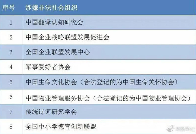 民政部17日公布2022年第一批涉嫌非法社會(huì)組織名單。包括全國(guó)中小學(xué)德育創(chuàng)新聯(lián)盟等8家。