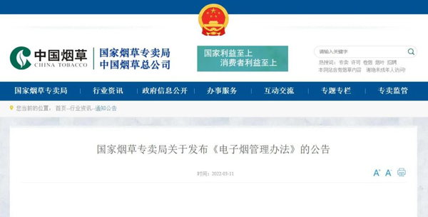 據(jù)國家煙草專賣局官網(wǎng)消息