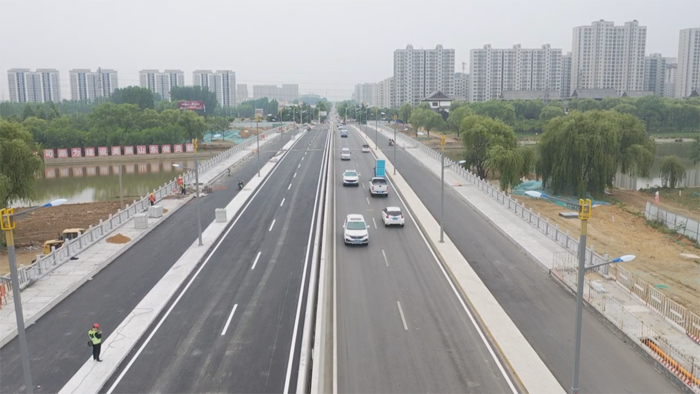 中交一公局海威工程建設(shè)有限公司項(xiàng)目副經(jīng)理兼安全總監(jiān)周海軍介紹道:“東104大沂河橋目前瀝青已經(jīng)攤鋪完成,我們正在施工伸縮縫與人行道,伸縮縫預(yù)計(jì)四天之后完成,人行道預(yù)計(jì)十天左右完成,整個(gè)右幅橋梁預(yù)計(jì)在本月中旬通車(chē)!