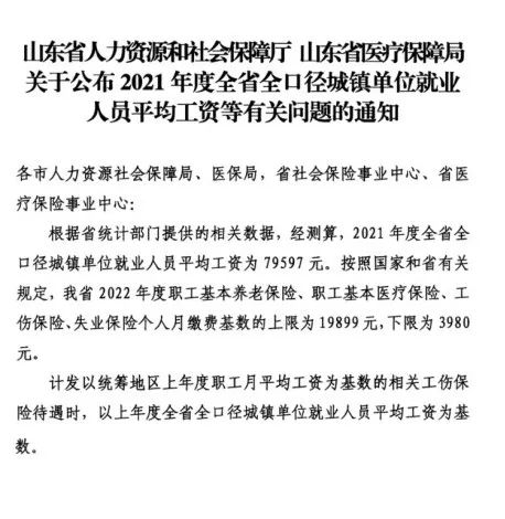 8月8日,山東省人力資源和社會(huì)保障廳、山東省醫(yī)療保障局發(fā)布公告,公布2022年度社會(huì)保險(xiǎn)繳費(fèi)基數(shù)上下限。