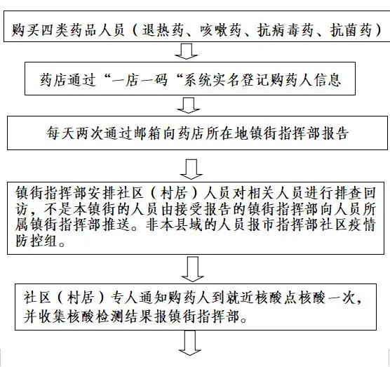 為進(jìn)一步發(fā)揮藥店“哨點(diǎn)”作用,完善多渠道監(jiān)測(cè)預(yù)警,嚴(yán)格貫徹落實(shí)山東省《全面做好新冠肺炎疫情常態(tài)化防控工作方案(第九版)》(魯指發(fā)〔2022〕11 號(hào))文件精神,市委統(tǒng)籌疫情防控和經(jīng)濟(jì)運(yùn)行工作領(lǐng)導(dǎo)小組(指揮部)要求,在目前藥店執(zhí)行銷(xiāo)售“四類(lèi)藥品”進(jìn)行實(shí)名登記上報(bào)的基礎(chǔ)上,繼續(xù)對(duì)購(gòu)買(mǎi)使用“四類(lèi)藥品”的人員立即安排進(jìn)行1次核酸檢測(cè),有關(guān)處置流程如下: