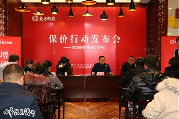 2019年1月1日上午10:30分, “東方御府保價行動發(fā)布會”在項目營銷中心隆重召開。曲阜市公證處張建鳳女士、張亦驕先生蒞臨,為本次發(fā)布會作現(xiàn)場公證;曲阜電視廣播臺孫昕宇先生、曲阜房地產(chǎn)網(wǎng)顧東先生、曲阜信息港網(wǎng)孔甜甜女士、曲阜123網(wǎng)站總編輯孔令彬先生等多家媒體以及百余業(yè)主代表出席本次發(fā)布會;曲阜盛仁房地產(chǎn)開發(fā)有限公司董事長特別助理鄧強先生、銷售總監(jiān)吳保州先生在現(xiàn)場發(fā)表重要講話。本次保價發(fā)布會,東方御府以正式公開的方式向市場承諾“升值您享受,降價我補差”,這在曲阜地產(chǎn)圈史無前例。